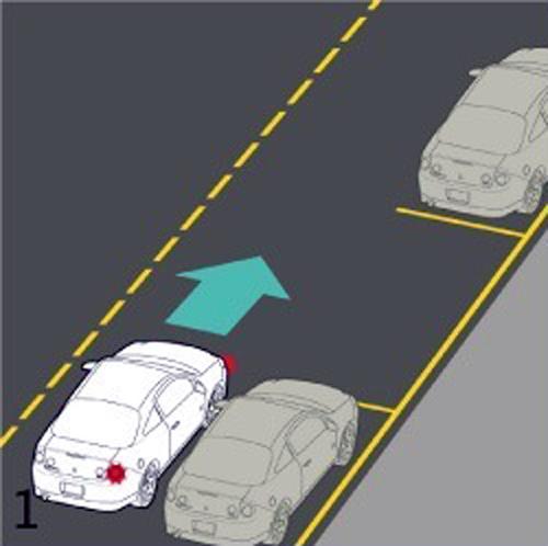 1 – Primeiro, vamos imaginar uma situação comum onde para estacionar, é necessário fazer uma baliza entre dois carros, com pouco espaço. O que deve ser feito neste momento é alinhar o seu carro com o carro da frente.
