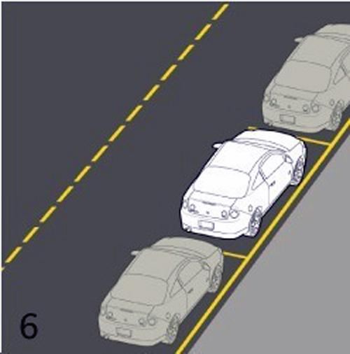 6 – Dê ré até que o seu carro fique na posição adequada. Lembre-se de não ficar muito próximo aos outros carros, para não dificultar a vida de ninguém que queira sair com o carro.