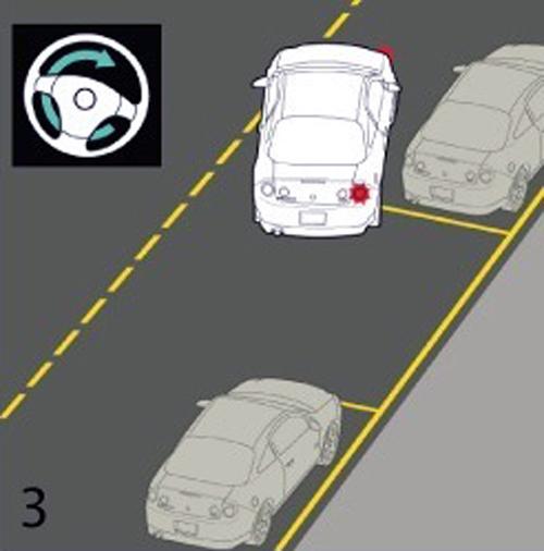4 – Dê ré até que o seu pneu dianteiro – o que está mais próximo da vaga – encontre-se no limite da traseira do carro à frente.